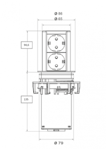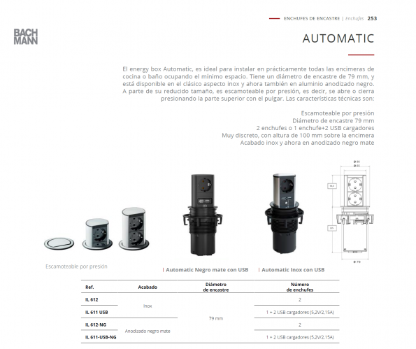 cocina o baño ocupando el mínimo espacio. Tiene un diámetro de encastre de 79 mm, y