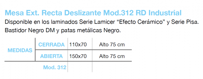 Mesa Ext. Recta Deslizante Mod.312 RD Industrial