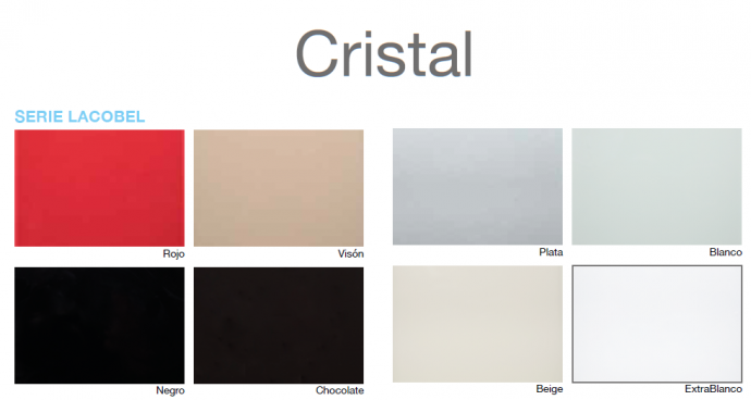 Colores cristal: Blanco, Negro, Plata, Beige, Visón, Chocolate, Rojo y ExtraBlanco