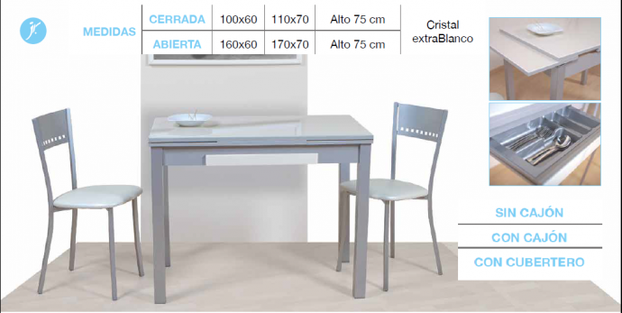Mesa Extensible 2 alas mod. 201-C / Cristal Beige
