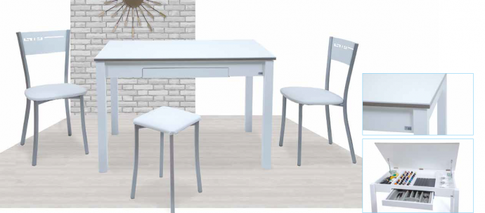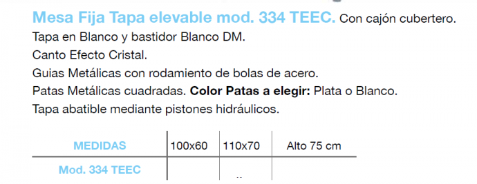 Mesa Fija Tapa elevable mod. 334 TEEC. Con cajón cubertero.