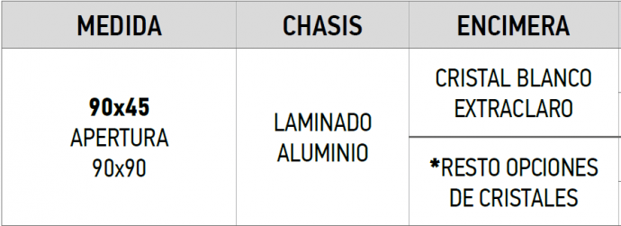 Características cristal: cristal templado 4 mm. pegado sobre tablero de DM laminado.