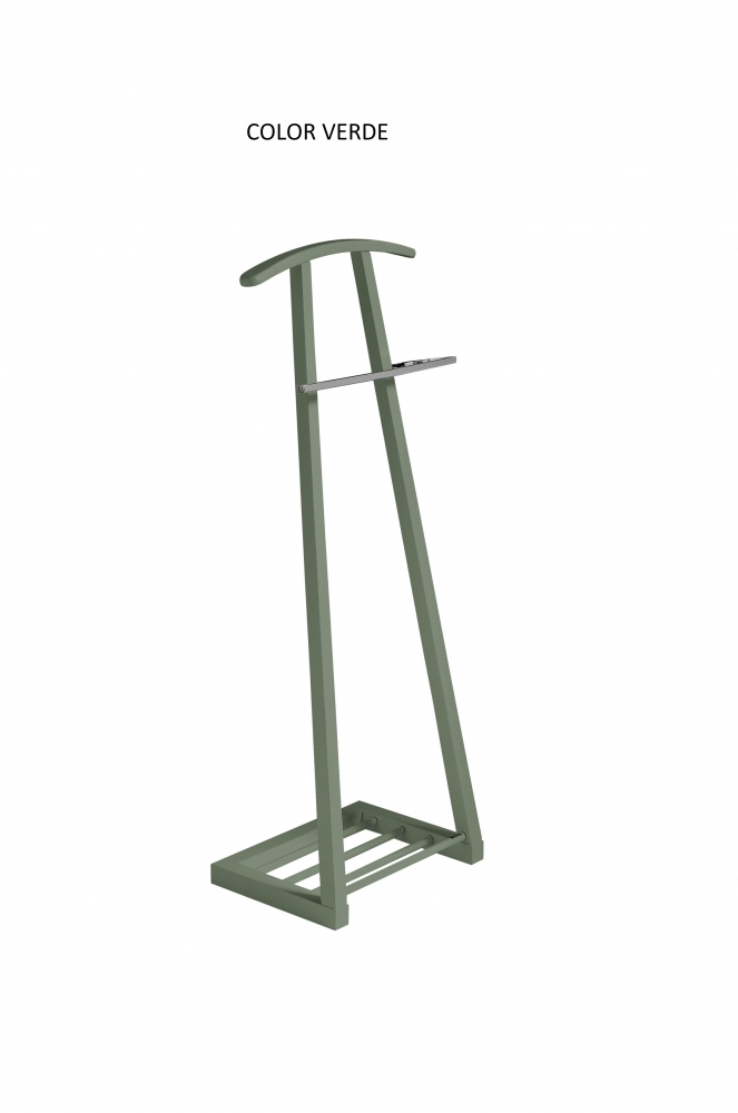 Perchero galán de noche de 111 cm de alto y 46 de ancho fabricado en madera de alta calidad en chapado natural o lacada con herraje en cromo brillo. Disponible en 19 colores a elegir.
