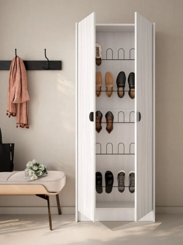 Mueble zapatero alto, equipado con 5 colgadores metálicos, los cuales permiten colgar 3 pares de calzado