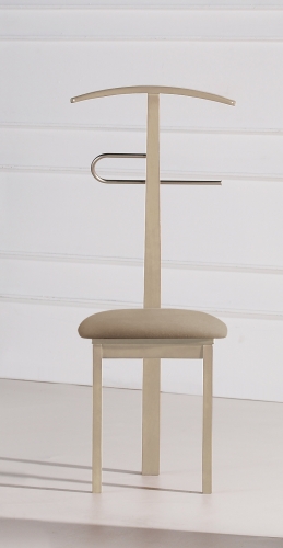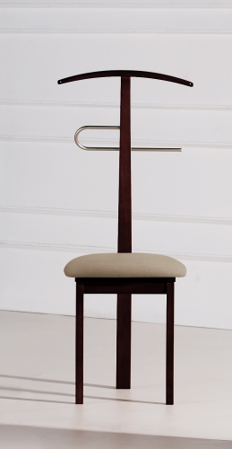 Galán silla fabricado en madera de haya y terminación con hierro cromado. Asiento terminado en polipiel de primera.