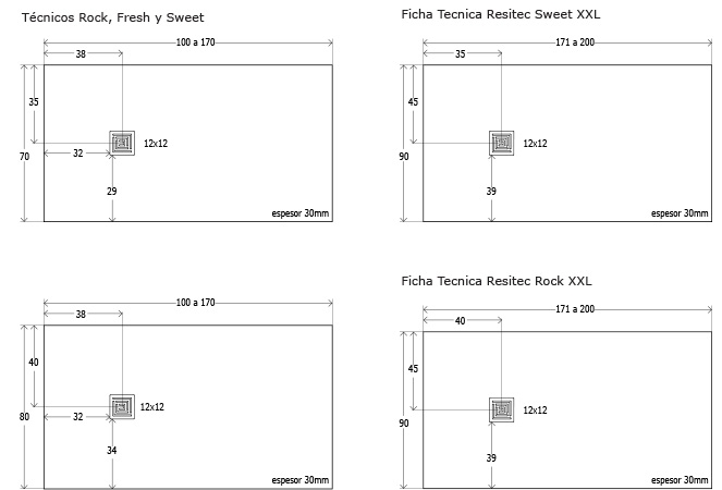 Con la resina técnica la superficie de contacto es menos fría que con los platos tradicionales. Rock se fabrica en textura piedra con certificación antideslizante clase 3 y Sweet se produce en textura lisa con certificación antideslizante clase 3. Clase 3 es la máxima calificación que se le puede otorgar a un plato de ducha.