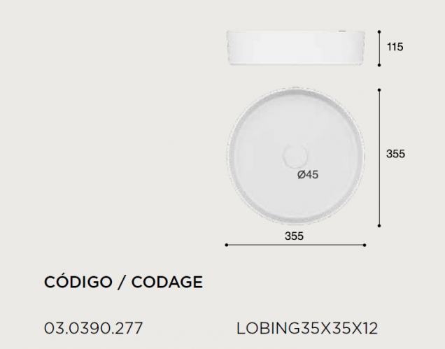 Sin rebosadero. Porcelana color gris claro.