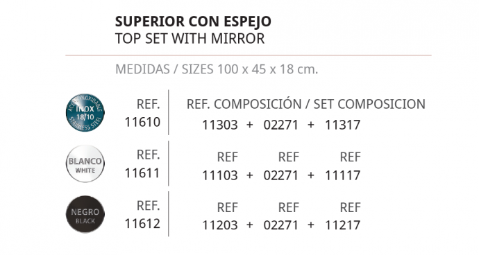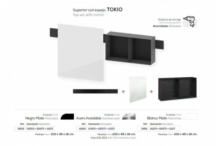 incluye conjunto de espejo,barra,mueble modelo tokio medidas