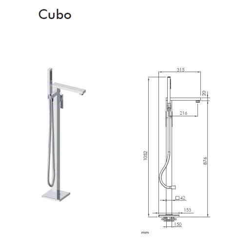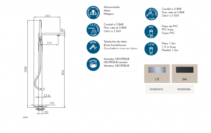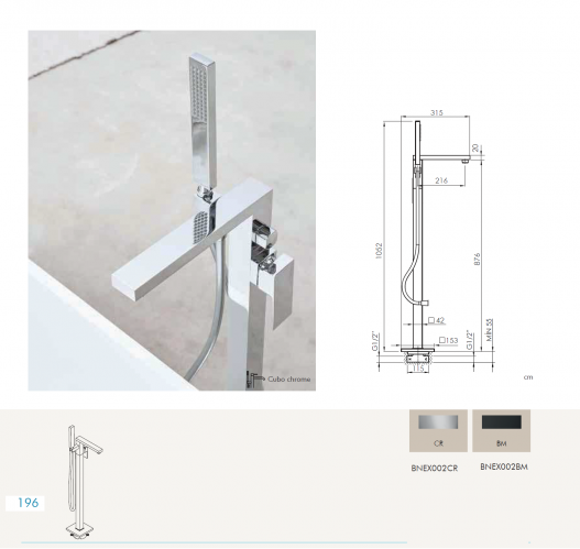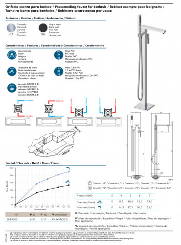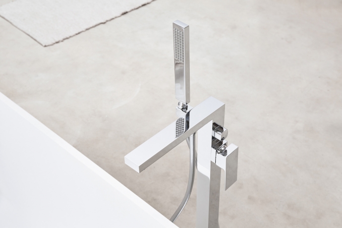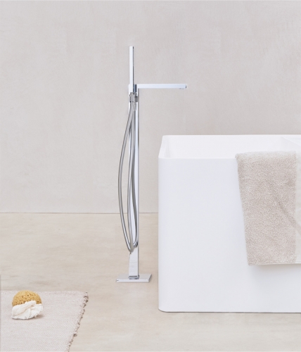 es una grifería monomando para bañera, con instalación al suelo para bañeras exentas. Cuenta con un caño de