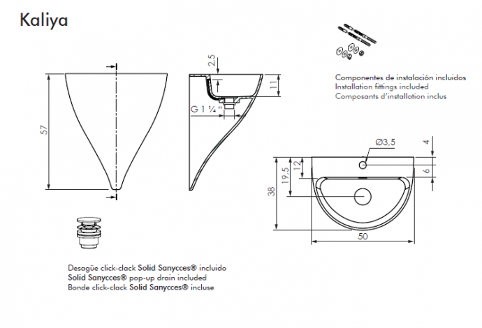 Material: Cargas minerales y sinteticas Sanydur Sanycces, se incluyen los sistemas de anclaje y la válvula clikc-clack