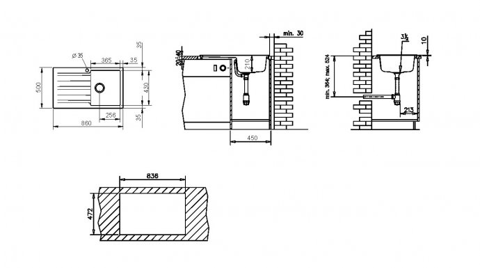 Montaje en mueble mínimo de 60 cm.