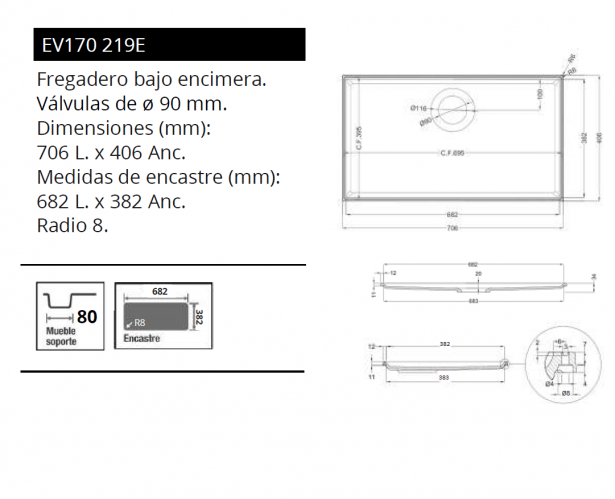 Cubeta bajo encimera en color negro, diseñada para integrarse perfectamente con el mismo material de
