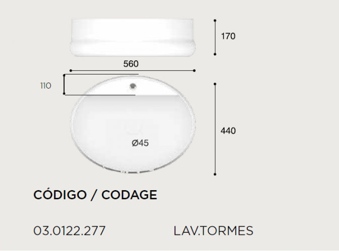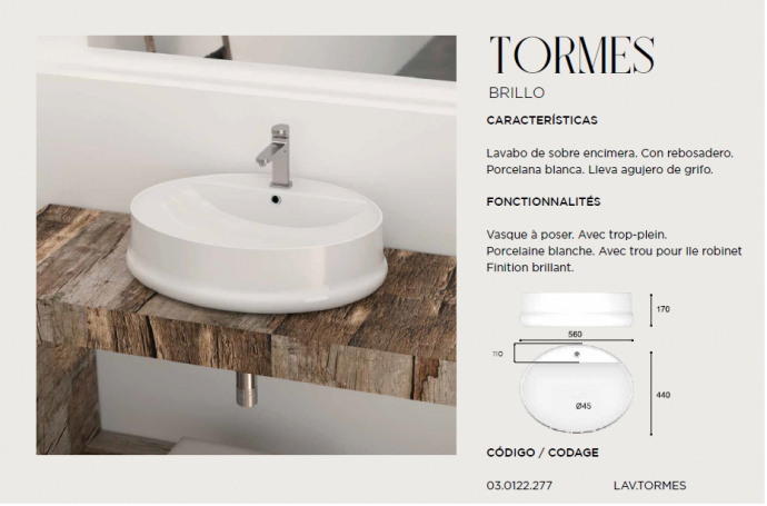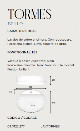 Lavabo de sobre-encimera, Con rebosadero, Porcelana blanca.