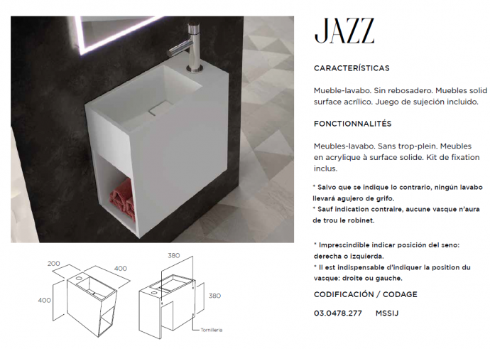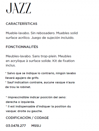 Mueble-lavabo, Sin rebosadero, Solid surface.
