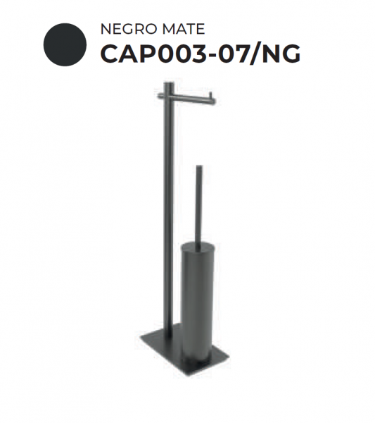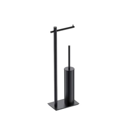 Escobillero con porta-rollo en acero inoxidable.
