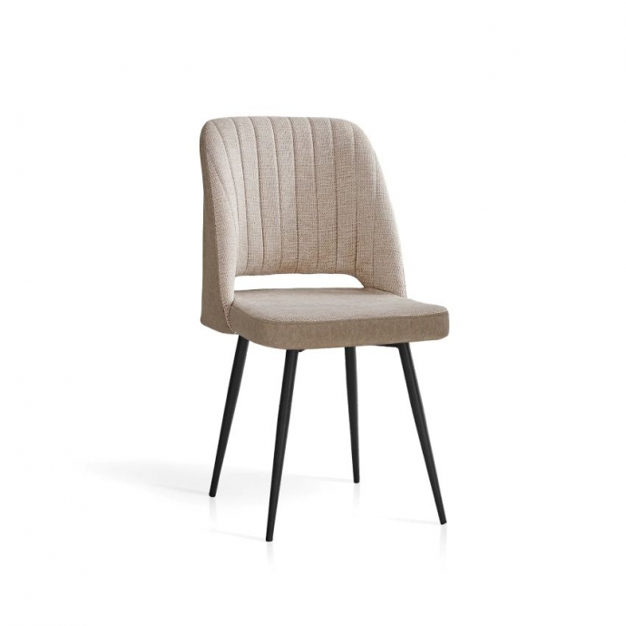 Esta silla combina la estructura de patas metálicas negras con el asiento y respaldo en color beige