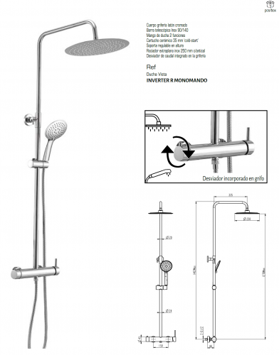 ROCIADOR: Acero Inox. Ø25 extraplano