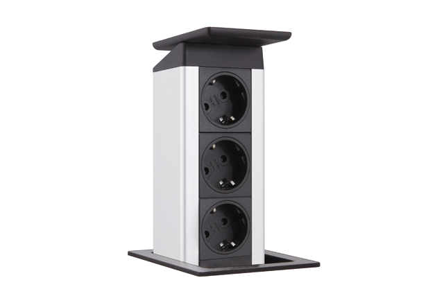 ligeramente la torre de enchufes para poder tirar de la tapa basculante y hacer aparecer los enchufes escondidos debajo de