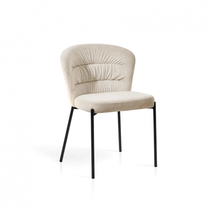 Silla acolchada de diseño moderno, con un respaldo fruncido que aporta un toque atractivo. Tapizada en