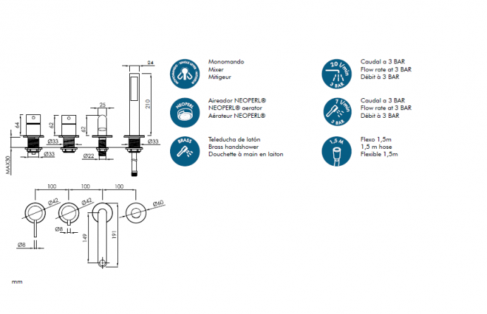 Disponible en varios acabado. Cromo , Niquel Cepillado, Oro Rosa, Negro Mate, Metal Gun