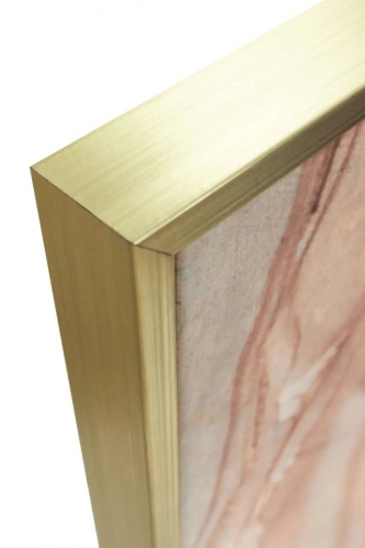 con toques dorados para un contraste elegante. Enmarcado en poliestireno dorado y con bastidor de MDF