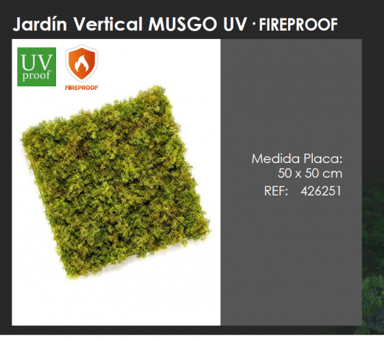 Jardín vertical MUSGO de máxima frondosidad y alto nivel de realismo. Protección UV y resistente al