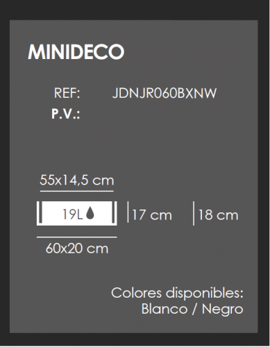 Medidas Exteriores (Ancho/largo/alto): 60 x 20 x 18 cm. Colores disponibles: Blanco y Negro.