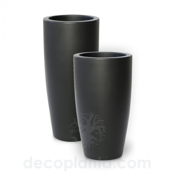 Jardinera alta redonda DECOALTA, con forma de cono. Fabricada en resina de alta