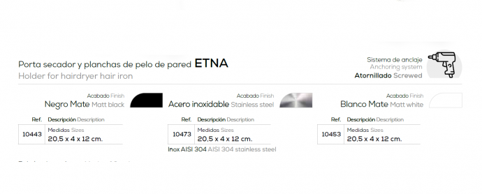 Acabado/color: negro mate. Acero inox, blanco mate,