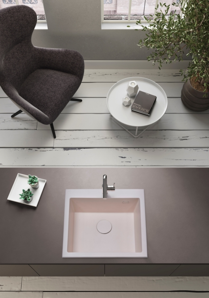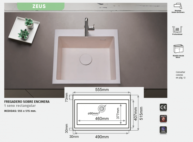 Fregadero sobre encimera y bajo encimera / 1 seno rectangular