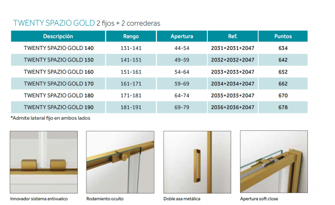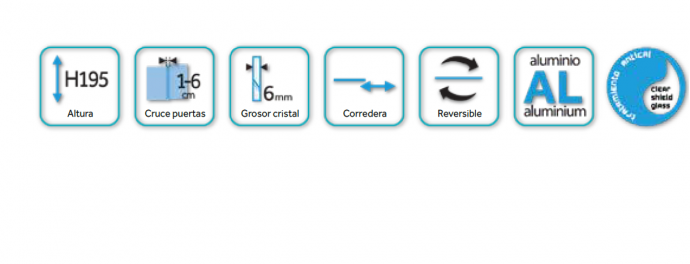 Perfilería Inferior. Altura 195cm. Cristal templado Fijo y Corredera 6 mm. Sistema