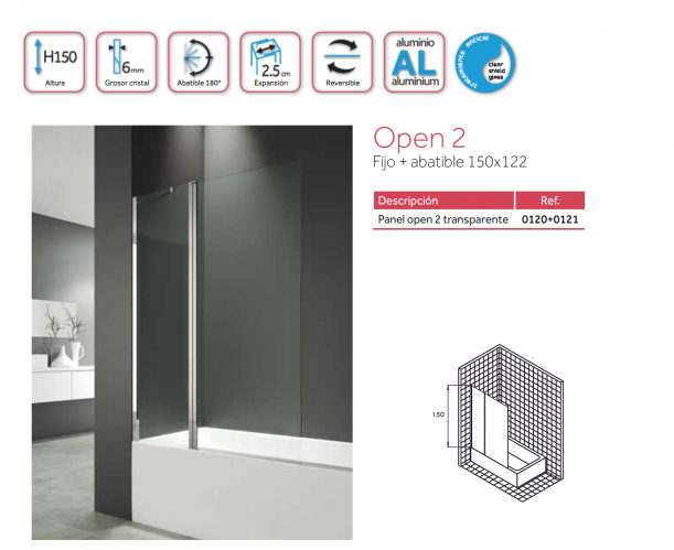 El modelo OPEN 2 se compone de dos paneles (un fijo + un abatible)