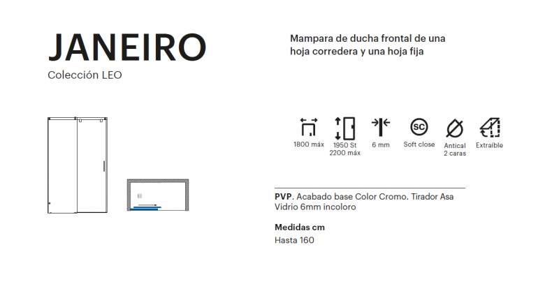 Mampara de ducha frontal de una hoja corredera y una hoja fija.