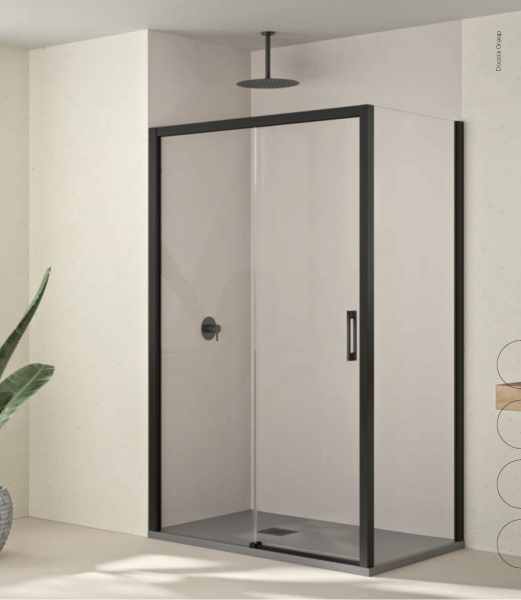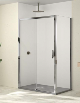 Mampara frontal 1 fijo y 1 puerta corredera, y 1 Fijo lateral