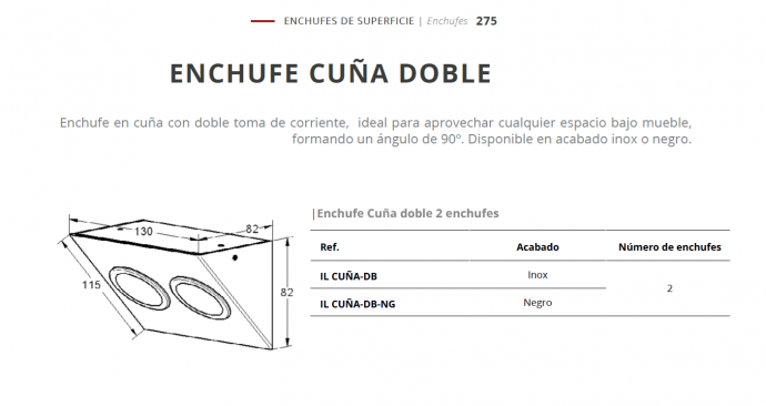 Enfuche en cuña doble acabado en inox o negro para instalación bajo mueble formando 90º.