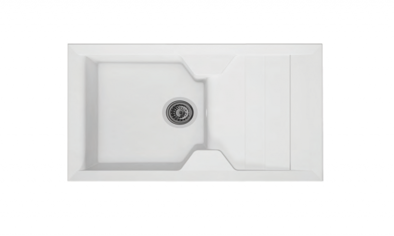 Fregadero de composite modelo Malta 810 de Solfless, diseñado para instalación sobre encimera. Fabricado con material MMC de alta resistencia,
