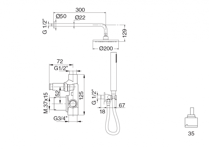 • Rociador orientable anticalcáreo ABS de 20 cm.