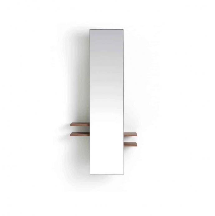 Recibidor suspendido fabricado en melamina. Diseño sencillo con espejo vertical y 4 estantes.