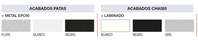 Chasis en laminado , tambien en blanco , negro o plata, como las patas.