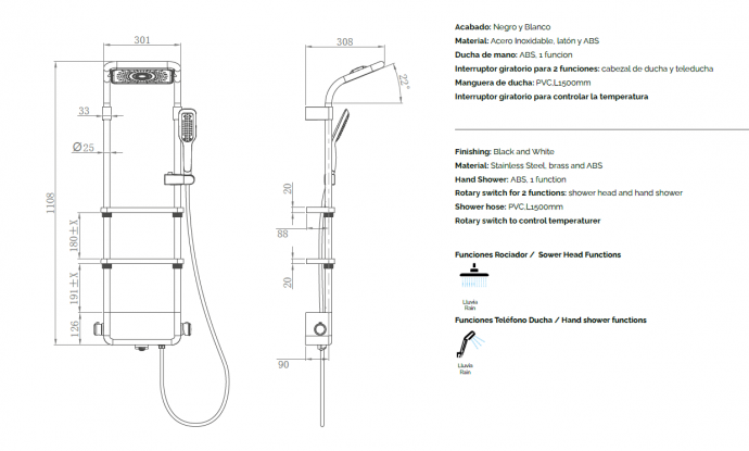 Ducha de mano: ABS, 1 funcion