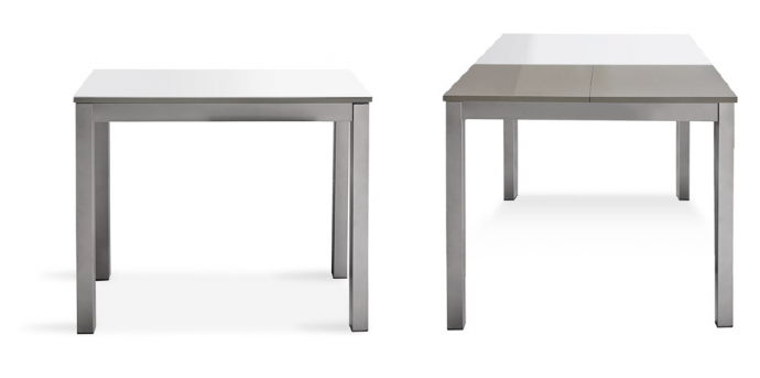 Mesa con extensible frontal de 30cm oculto, el extensible aparece cuando desplazamos las patas de la mesa, las cuales incorporan una rueda oculta que facilita su apertura.