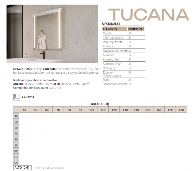 Alto: Desde 40 Ø cm hasta 120 Ø cm / Ancho: Desde 40 Ø cm hasta 180 Ø cm
