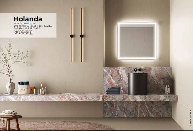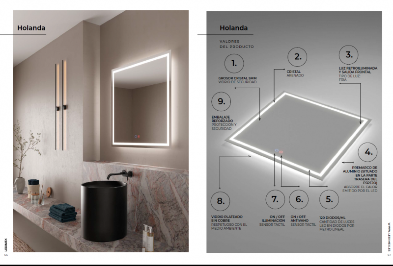 Luz retroiluminada y salida frontal a través de arenado en el cristal.