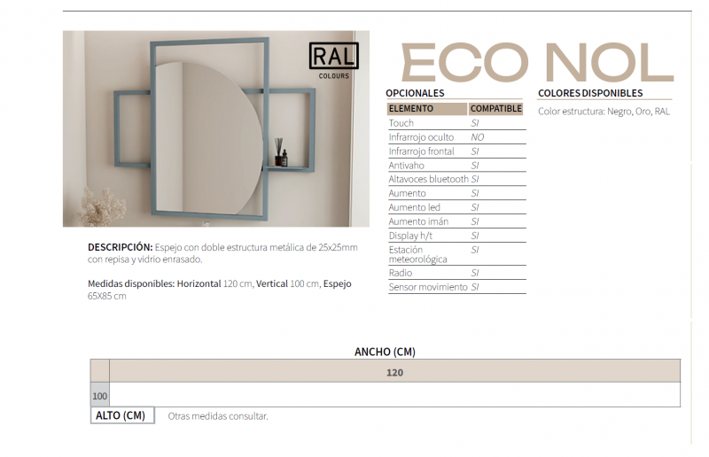 Medidas disponibles: Horizontal 120 cm, Vertical 100 cm, Espejo 65X85 cm