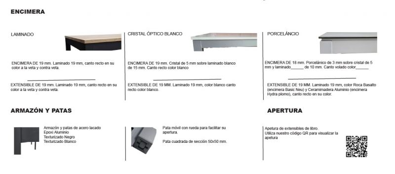 Mesa de cocina extensible fabricado por Mesinor, fabrica española situada en la Rioja, con mas de 20 años de experiencia.