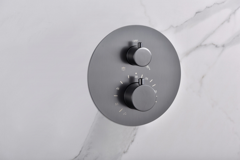 La grifería termostática empotrada de latón, de 2 vías, permite una regulación precisa y constante de la temperatura, incluso ante variaciones de