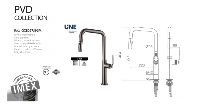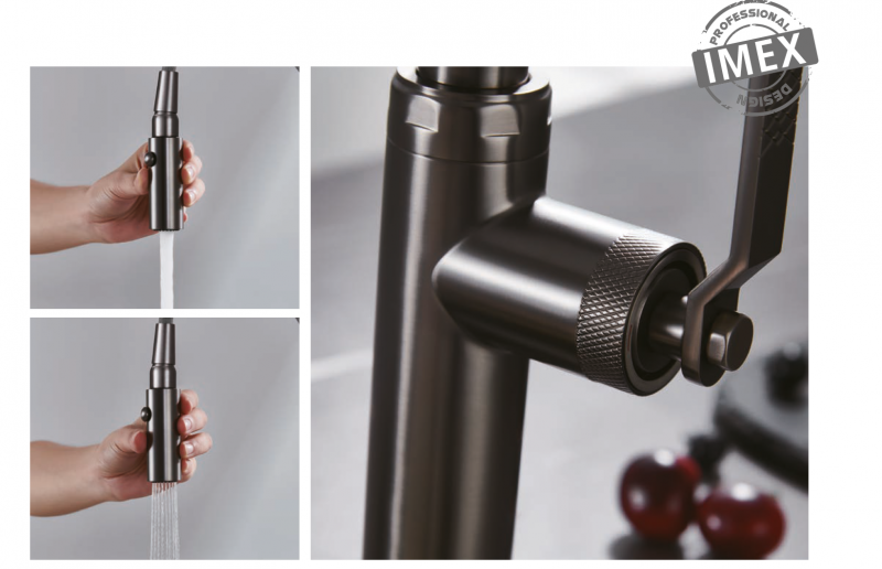 Grifería de cocina monomando extraíble Black Gun Metal serie Niza