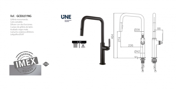 Grifería de cocina monomando extraíble negro mate serie Niza