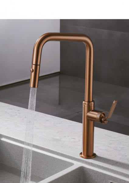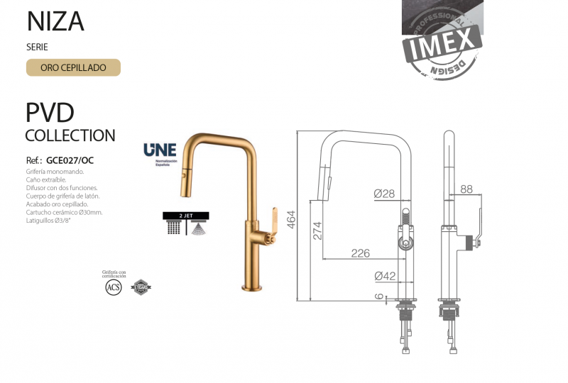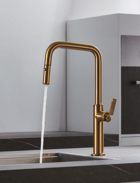 Grifería de cocina monomando extraíble oro cepillado serie Niza