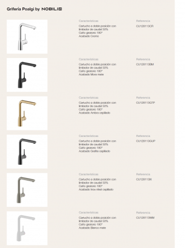 Acabado: Cromo, Mora mate, Oro cepillado, Grafite cepillado e Inox nikel cepillado